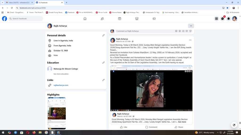 Good Morning. Today is 08 March 2026, Sunday.West Bengal Legislative Assembly Election 2026(Chirag Apartment Flat No.: 2D) : …Usey ‘Lovely Knight’ Kehte Hai… I am the BJP( Bring Jewish Power)…