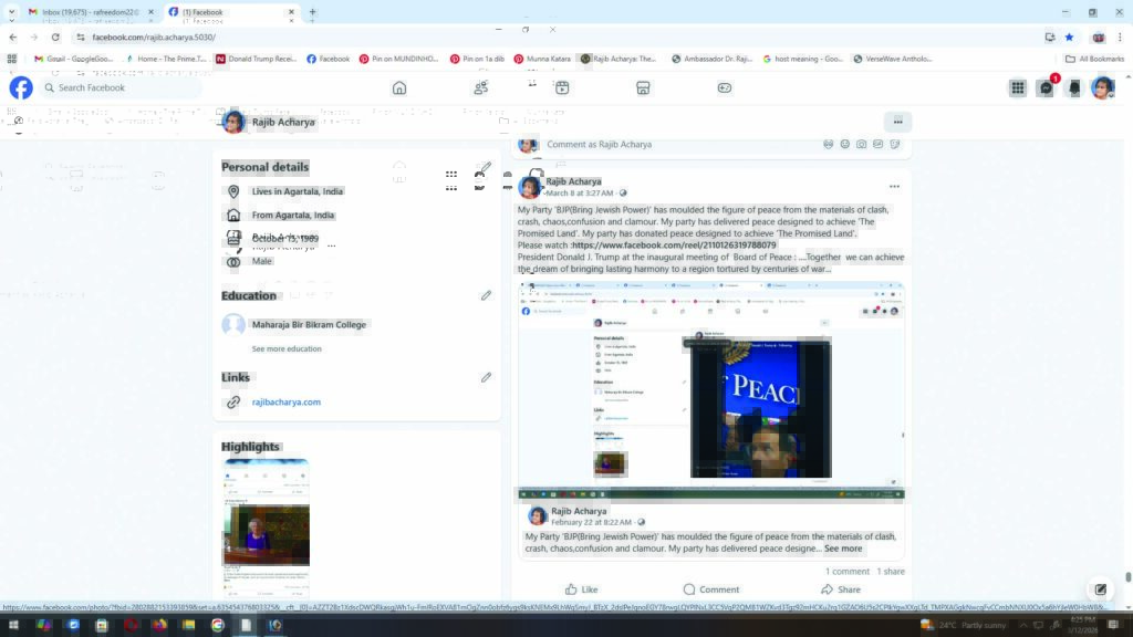 My Party ‘BJP(Bring Jewish Power)’ has moulded the figure of peace from the materials of clash, crash, chaos,confusion and clamour. My party has delivered peace designed to achieve ‘The Promised Land’. My party has donated peace designed to achieve ‘The Promised Land’.