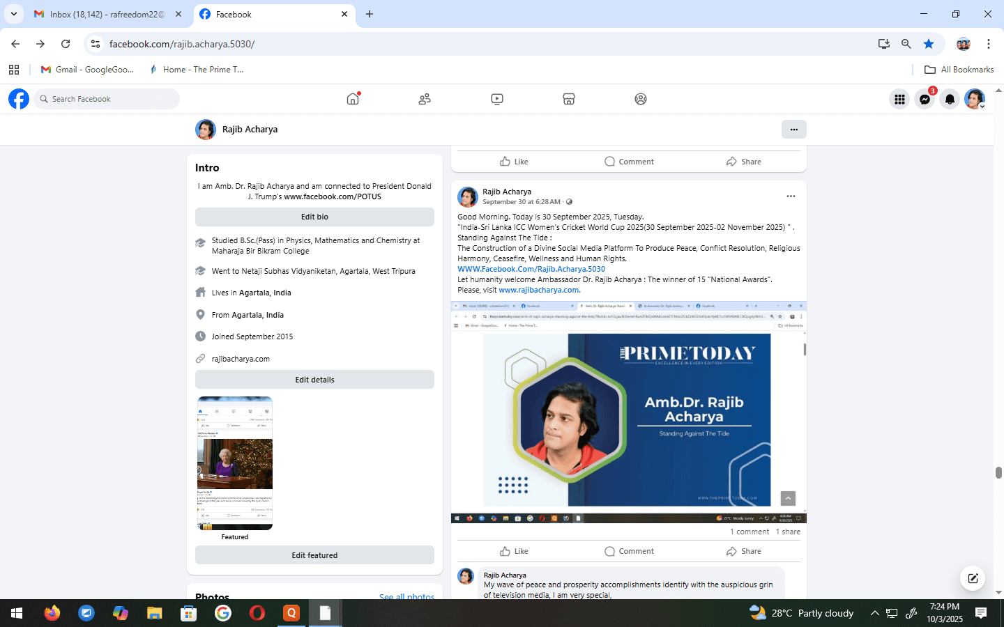 Let humanity welcome Ambassador Dr. Rajib Acharya : The winner of 15 “National Awards”.